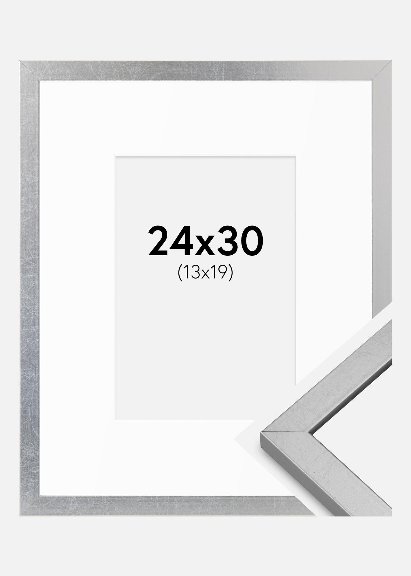 Cadre Minerva Argent 24x30 cm - Passe-partout Blanc 14x20 cm