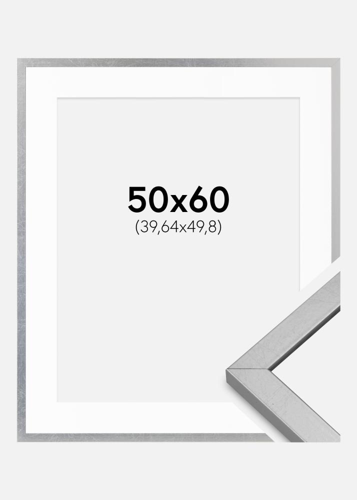 Cadre Minerva Argent 50x60 cm - Passe-partout Blanc 16x20 inches