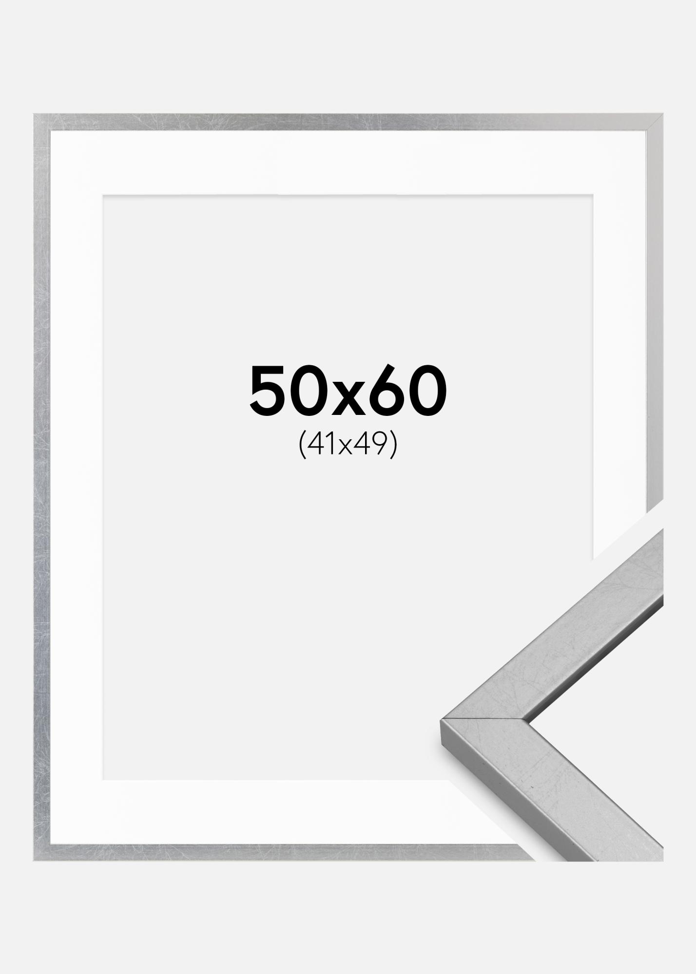 Cadre Minerva Argent 50x60 cm - Passe-partout Blanc 42x50 cm