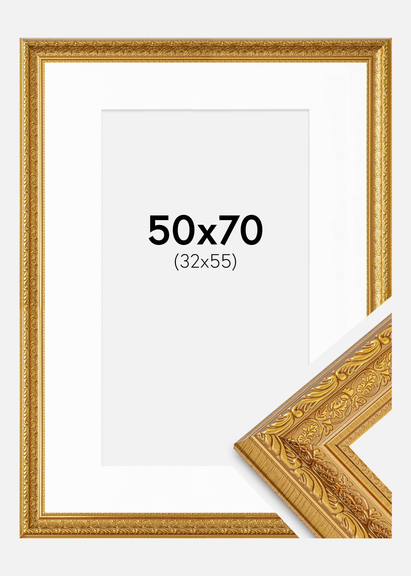 Cadre Ornate Or 50x70 cm - Passe-partout Blanc 33x56 cm