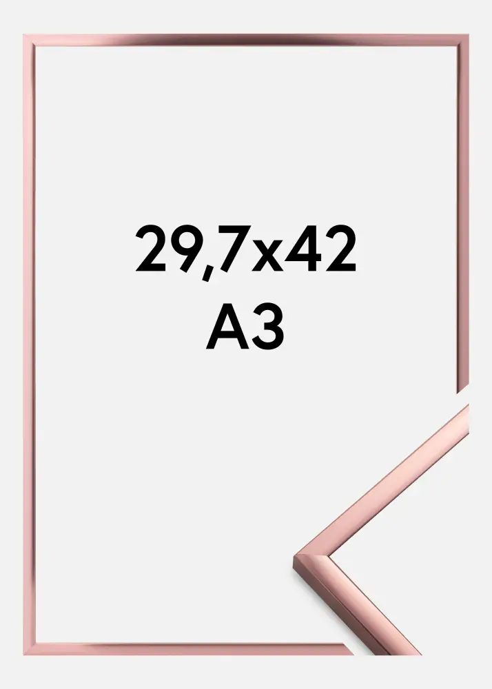 Donnez une touche d'élégance à vos affiches et œuvres d'art avec notre élégante cadre en aluminium couleur or rose. Avec une taille de cadre de 29,7 x 42 cm, il convient parfaitement au format A3 et deviendra un détail sophistiqué dans n'importe quelle pièce.