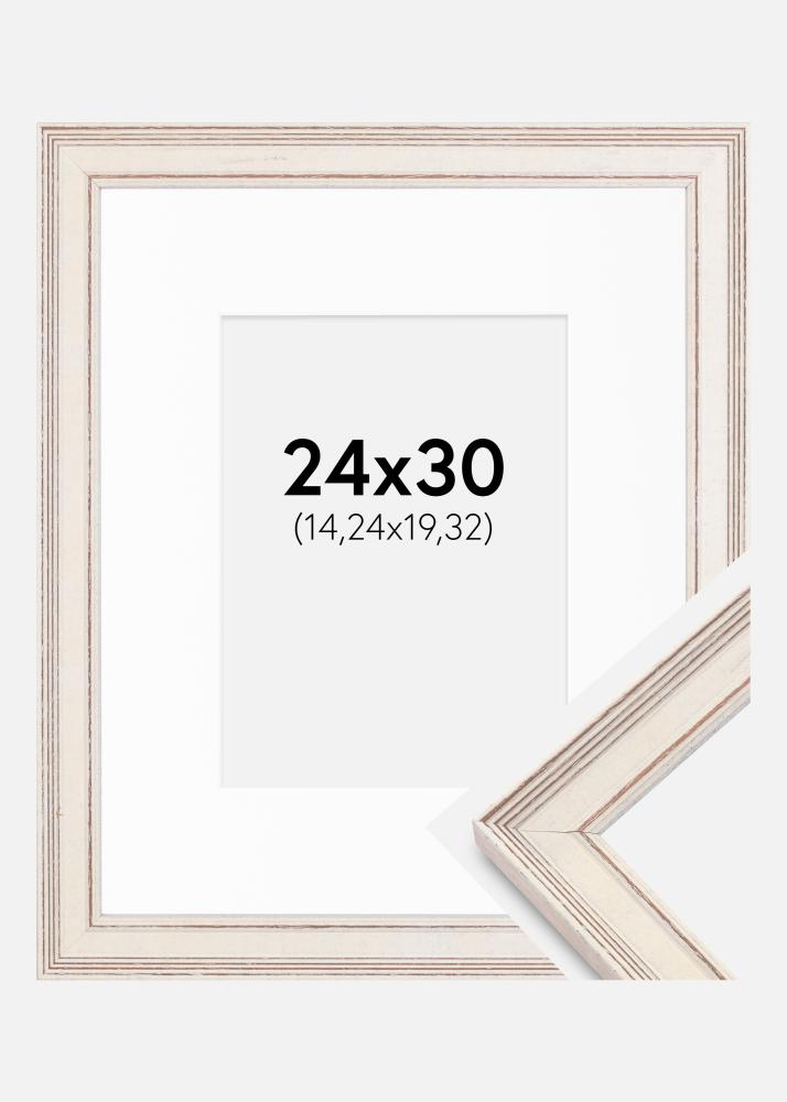 Forfait comprenant le cadre photo et le passe-partout blanc assorti. Sur la photo du produit, vous pouvez voir les dimensions du cadre (indiquées en gras) et les dimensions intérieures du passe-partout (indiquées entre parenthèses). Notez que les dimensions intérieures du passe-partout se doivent d'être toujours 1 cm inférieures par rapport à la taille de l'image que vous souhaitez encadrer.