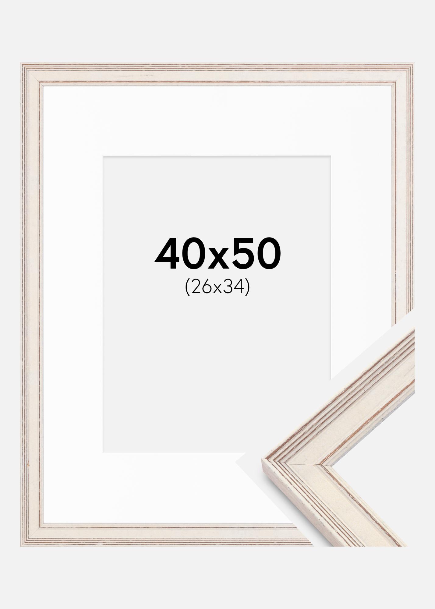 Cadre Shabby Chic Blanc 40x50 cm - Passe-partout Blanc 27x35 cm