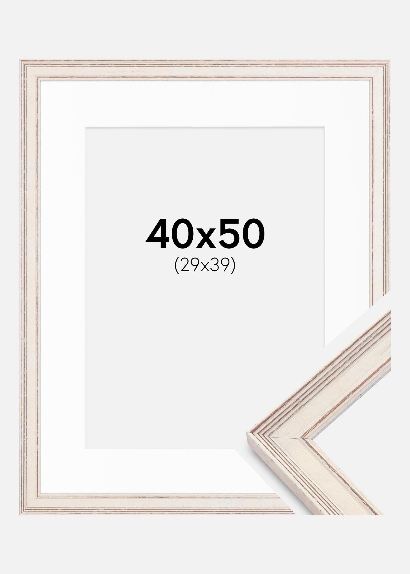 Cadre Shabby Chic Blanc 40x50 cm - Passe-partout Blanc 30x40 cm