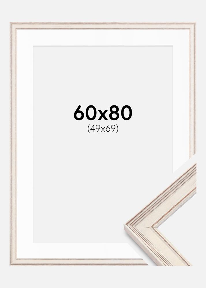 Cadre Shabby Chic Blanc 60x80 cm - Passe-partout Blanc 50x70 cm