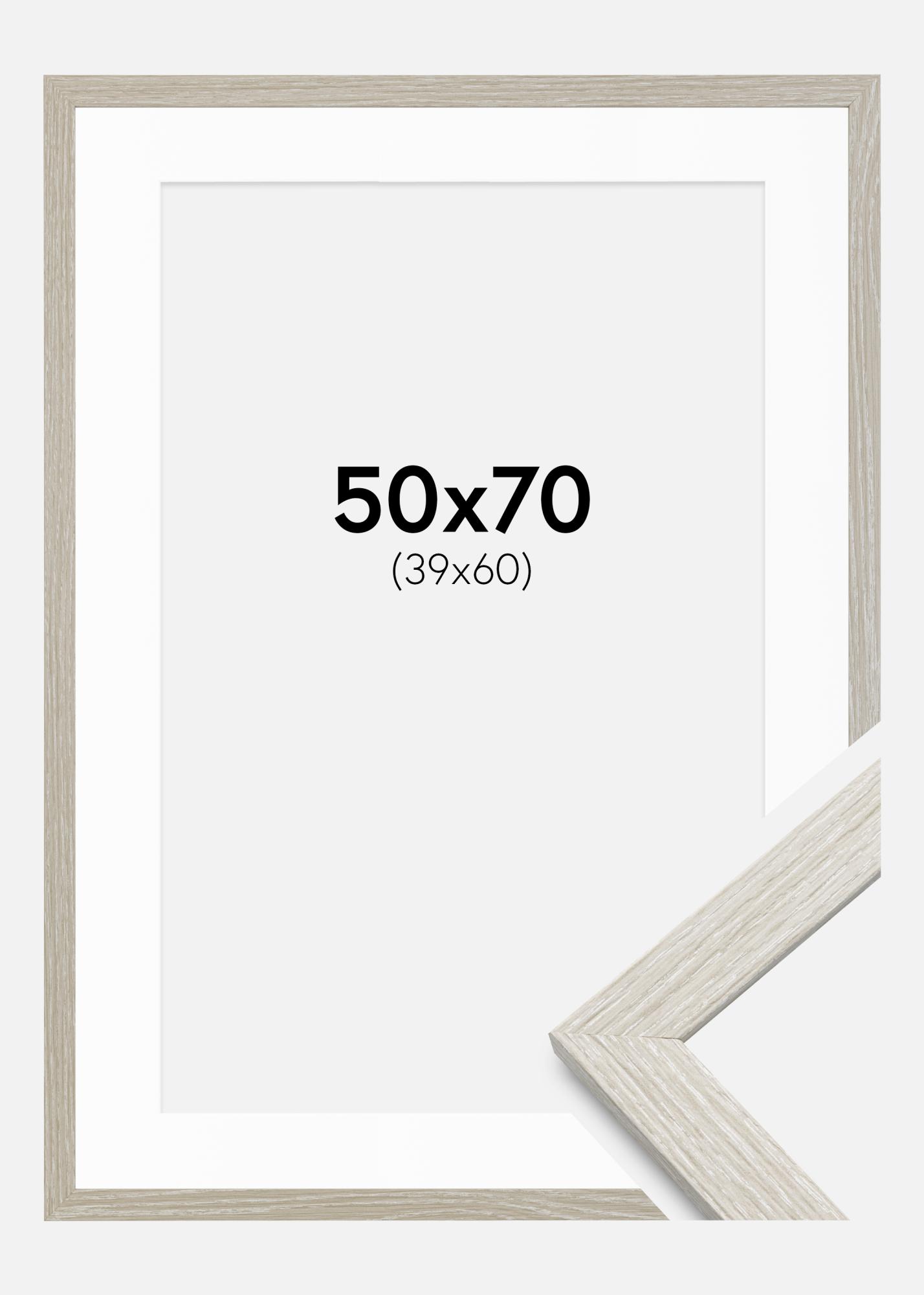 Cadre Stilren Chêne Gris Clair 50x70 cm - Passe-partout Blanc 40x61 cm