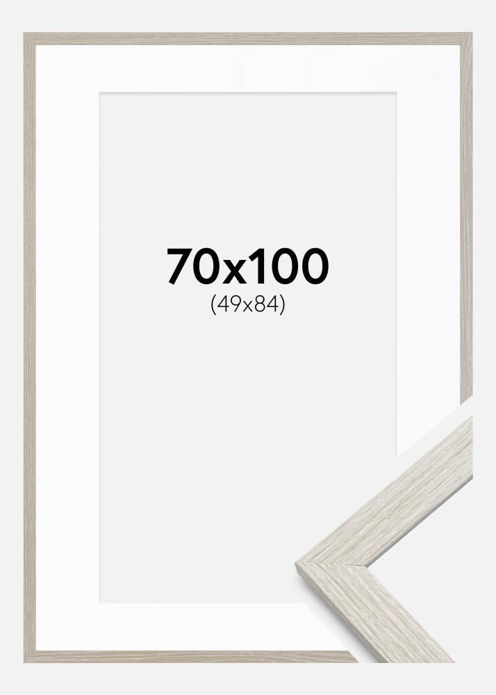 Cadre Stilren Chêne Gris Clair 70x100 cm - Passe-partout Blanc 50x85 cm