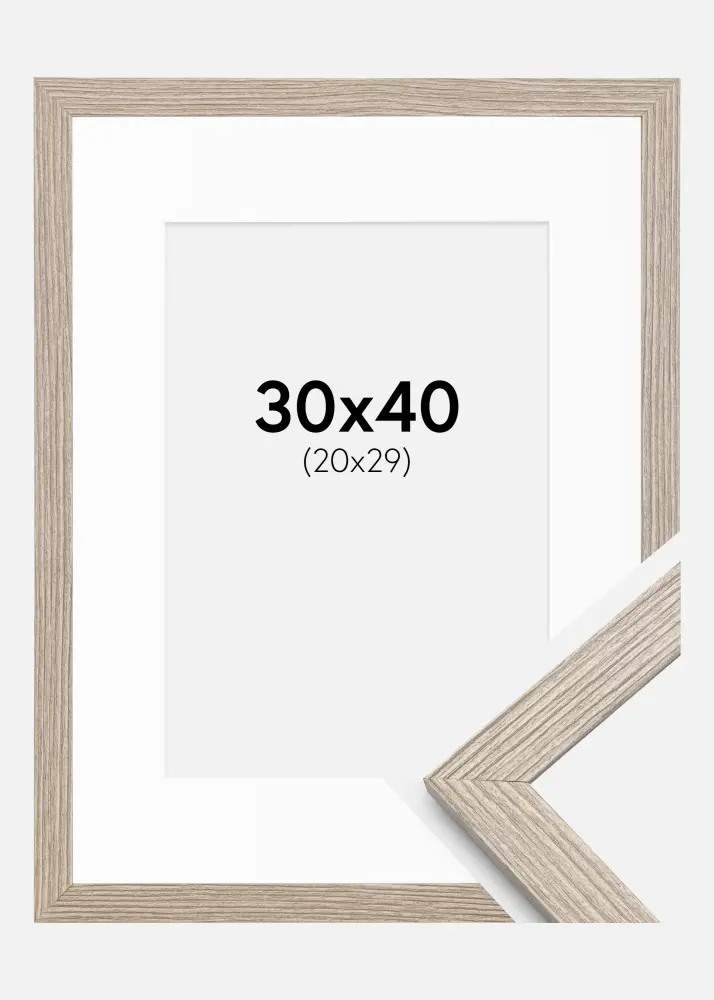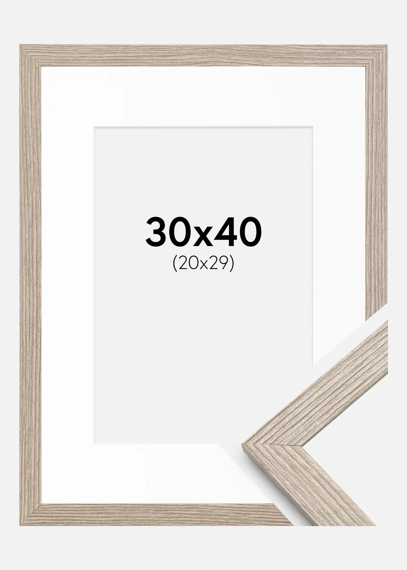 Cadre Stilren Chêne Greige 30x40 cm - Passe-partout Blanc 21x30 cm