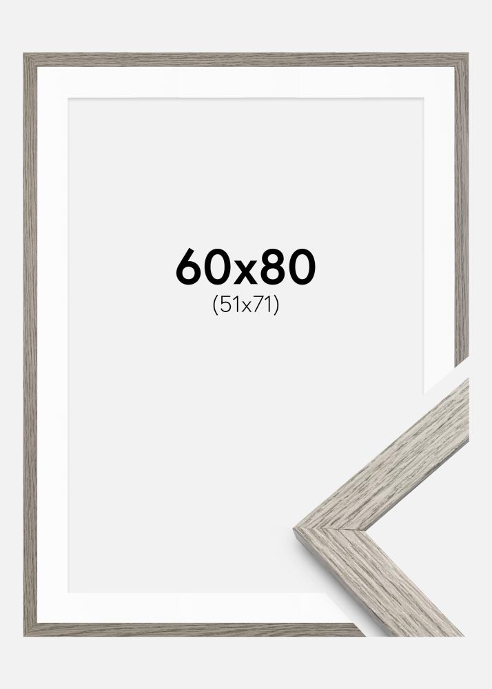 Cadre Stilren Chêne Gris 60x80 cm - Passe-partout Blanc 52x72 cm