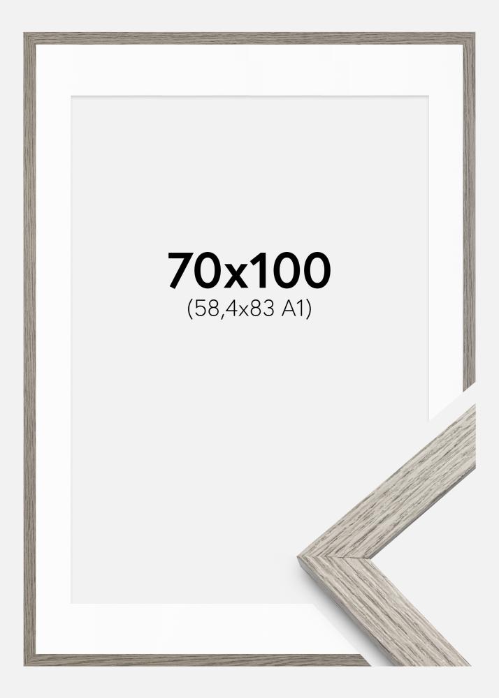 Cadre Stilren Chêne Gris 70x100 cm - Passe-partout Blanc 59,4x84 cm