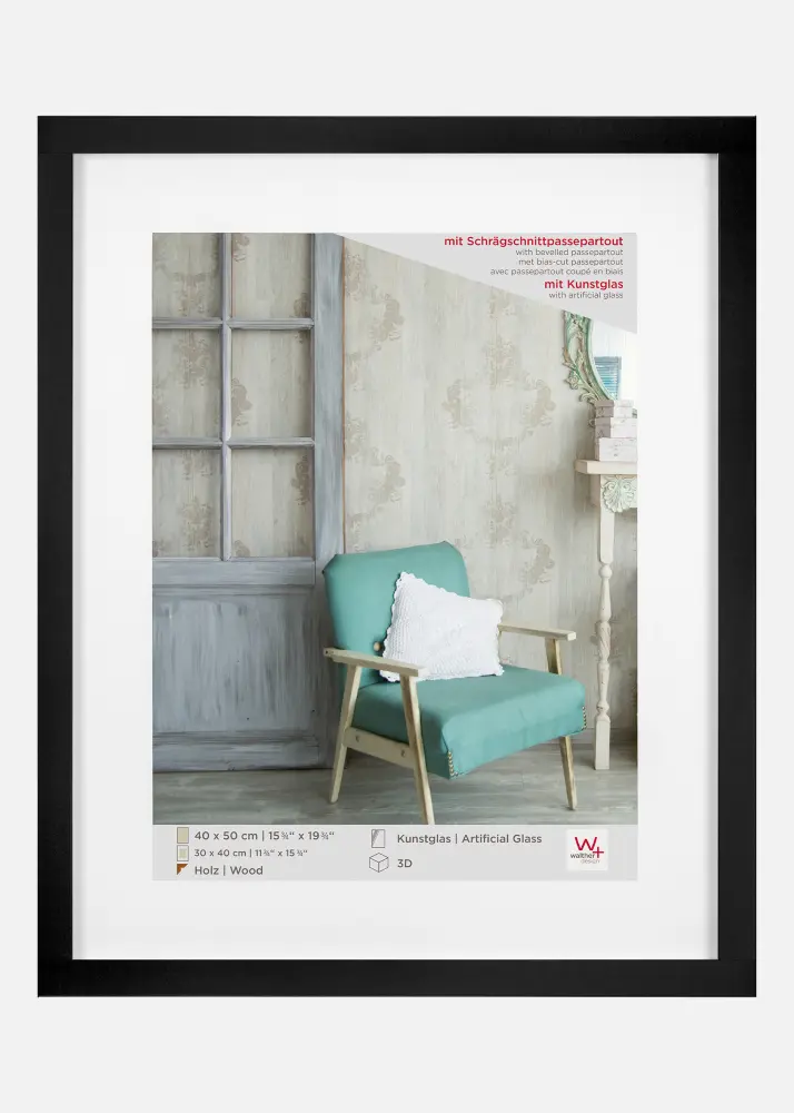 Cadre Stockholm Verre acrylique Noir 40x50 cm
