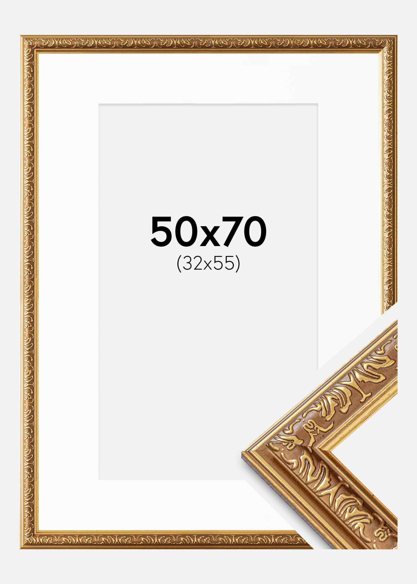 Transformez vos photos en œuvres d'art avec notre cadre élégant en or, complété par un passe-partout blanc raffiné. Ce cadre est parfait pour mettre en valeur vos photos préférées et leur donner un encadrement sophistiqué. Avec une taille d'image de 33x56 cm et des dimensions extérieures du cadre de 54,6x74,6 cm, vous obtenez une présentation impressionnante qui attire l'attention.
