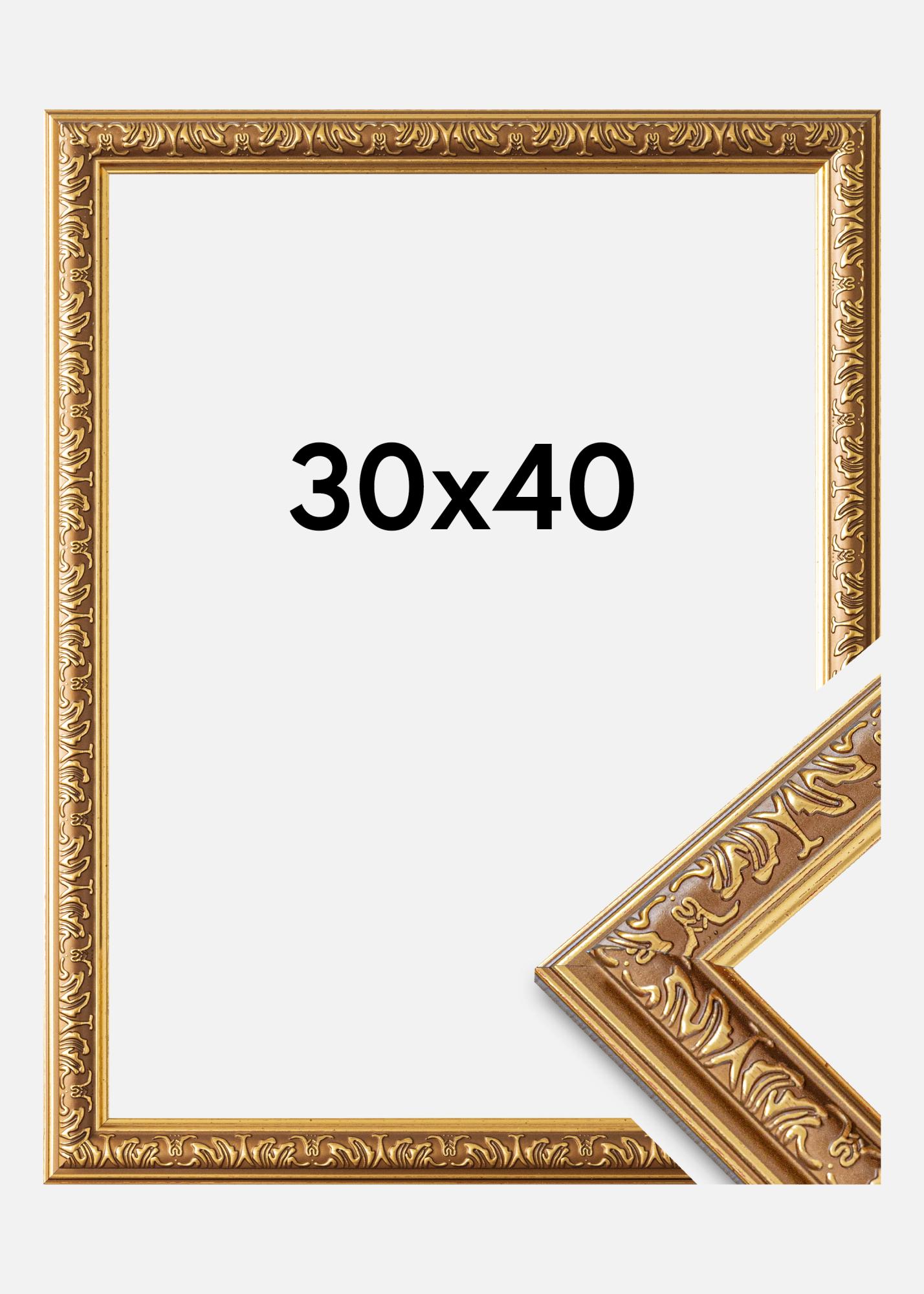 Ce cadre photo en or est une parfaite combinaison d'élégance classique et de fonctionnalité moderne. Avec sa taille de 30x40 cm, il est idéal pour mettre en valeur vos sujets favoris, qu'il s'agisse d'œuvres d'art ou de photographies. La finition dorée luxueuse et les détails décoratifs et ornés le long du bord intérieur du cadre ajoutent une touche de sophistication qui convient parfaitement aux styles d'intérieur à la fois classiques et élégants.