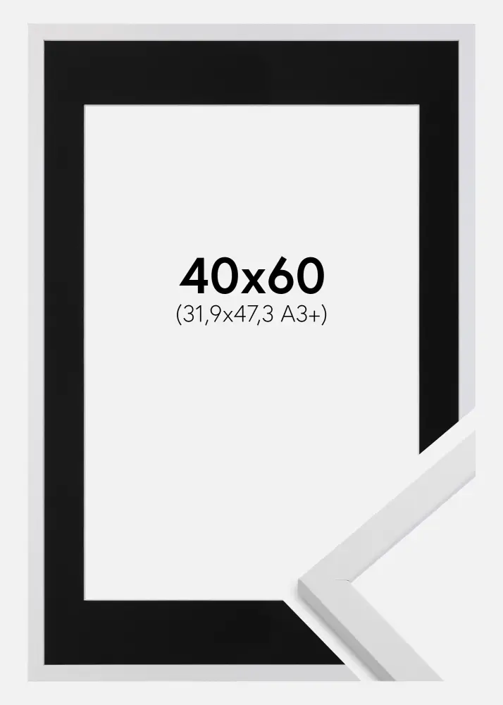Cadre Trendy Blanc 40x60 cm - Passe-partout Noir 32,9x48,3 cm