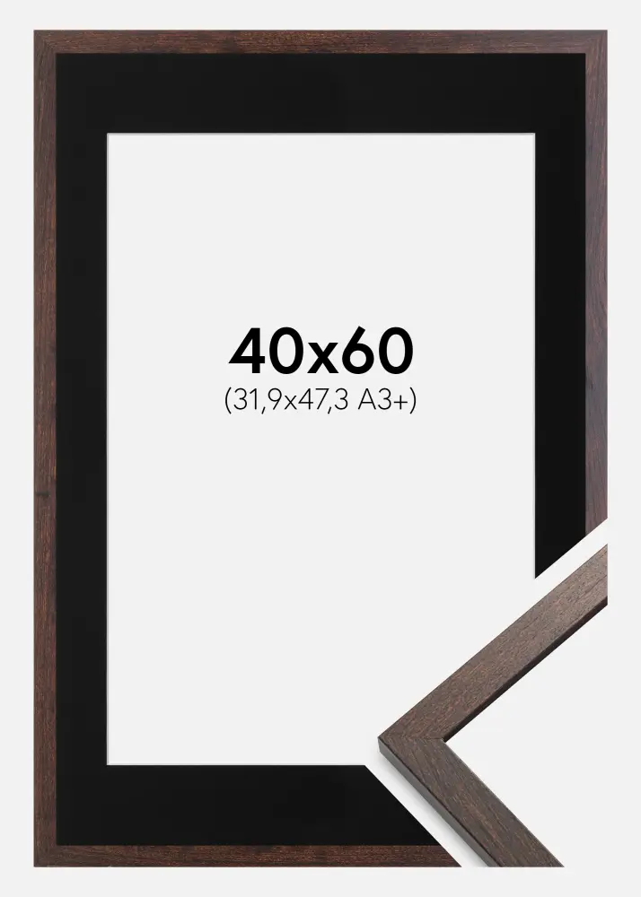 Cadre Trendy Noyer 40x60 cm - Passe-partout Noir 32,9x48,3 cm (A3+)