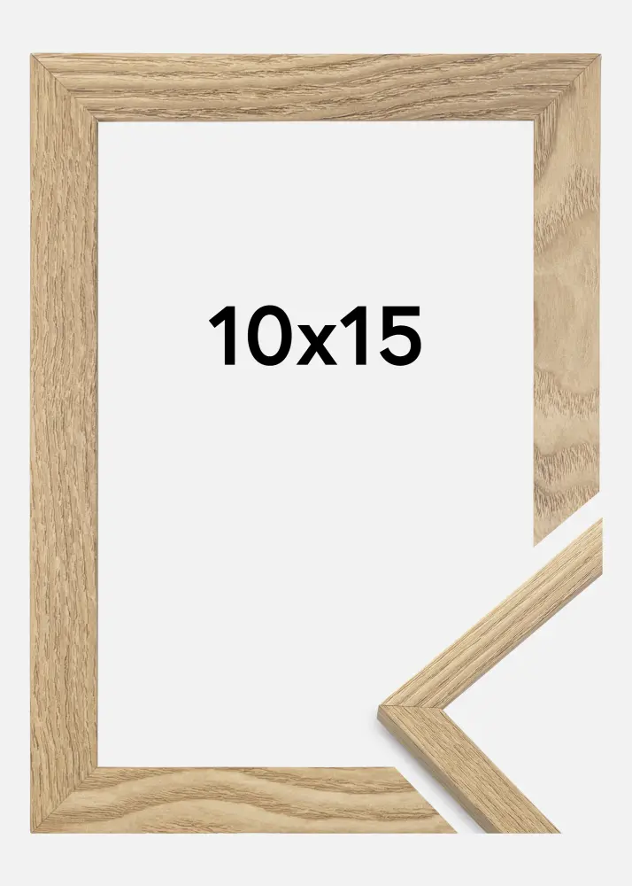 Le cadre, fabriqué en MDF avec placage en aluminium et une surface de couleur chêne est doté d'un mince profil de 14 mm. Il y a suffisamment d'espace pour combiner vos images avec un passe-partout luxueux, grâce à la profondeur intérieure du cadre (profondeur de baguette) de 12 mm.