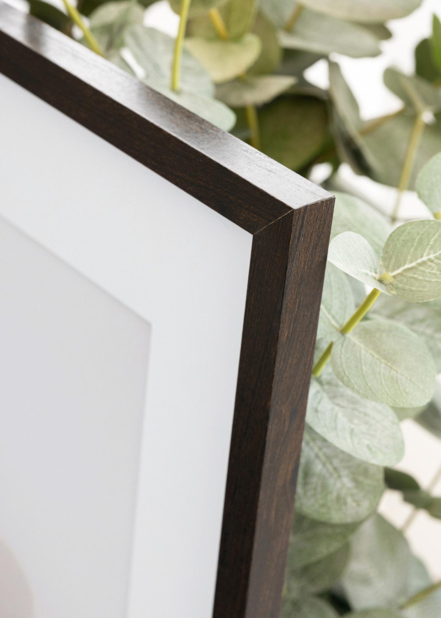 Un cadre en nuance de bois de noyer donne à vos motifs un encadrement proche de la nature avec une haute élégance. Il s'agit d'un modèle avec une liste de cadres de 14 mm de large avec un profil carré classique ainsi qu'un verre acrylique cristallin. Le verre acrylique est une variante de verre qui est incassable et léger, ce qui en fait un cadre adapté pour ceux qui souhaitent un accrochage plus léger.