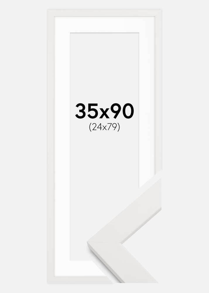 Cadre blanc bois 35x90 cm - Passe-partout Blanc 25x80 cm