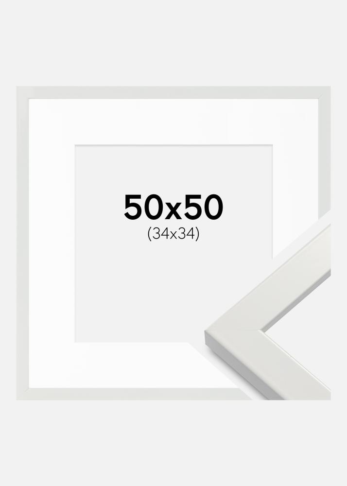 Cadre White Wood Glossy 50x50 cm - Passe-partout Blanc 35x35 cm