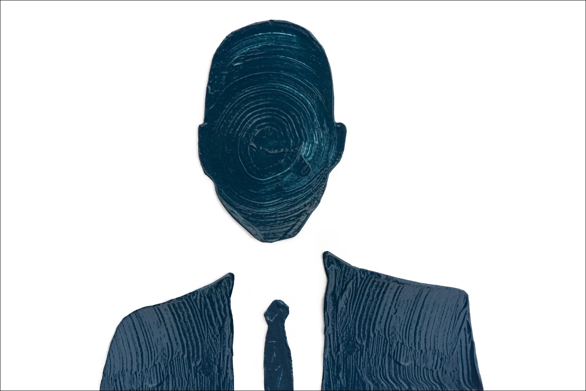 Une affiche impressionniste d'un homme sans visage. Ici, les espaces vides en disent autant que les espaces pleins, car la forme de l'homme est créée par des coups de pinceau bleus épais et texturés. Il n'a pas de visage, mais ce qui ressemble à une empreinte digitale, à la place. Laissez-vous émerveiller par l'imagination de cette œuvre.