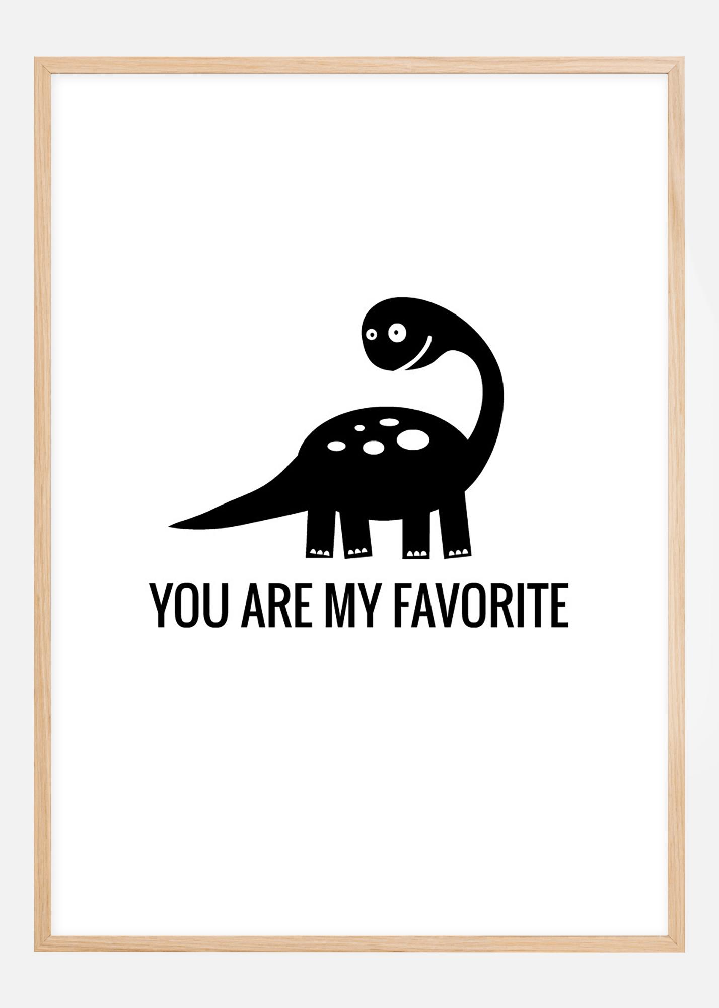 Adorable print avec un mignon dinosaure à offrir à son favori absolu dans le monde. Décorez la chambre d'enfant avec une feuille graphique qui fait sentir l'enfant aimé, spécialement conçu pour tous les fans de dinos. La typographie noire élégante assure que le print s'intègre quelles que soient la couleur et le style de la pièce. Se marie bien avec Elefant Dream, Kanin Happy, Hund Little, Superhero ou Pingvin Cool.