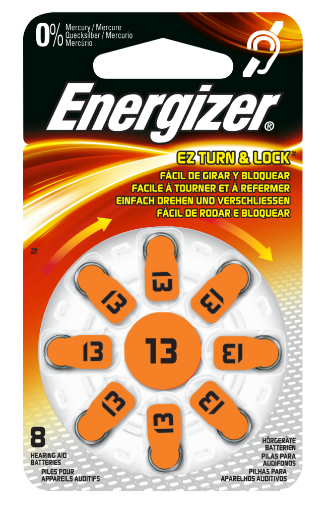 Batteries pour appareils auditifs de la marque réputée Energizer. Chaque paquet contient 8 batteries.