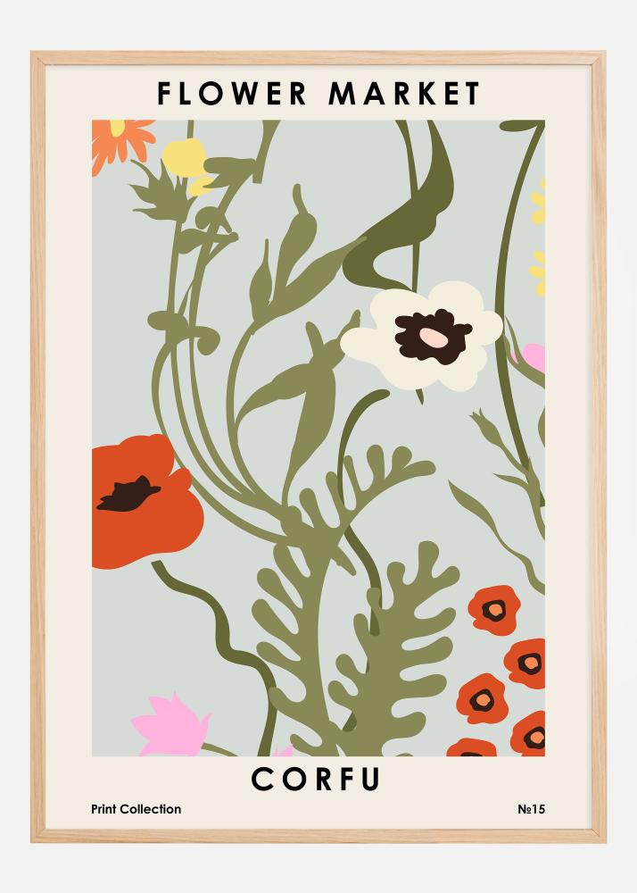 "CORFOU" est élégamment imprimé en bas, au-dessus de "Print Collection ?15", renforçant le sentiment de lieu et d'appartenance. Ce print illuminerait n'importe quel espace, apportant un peu de charme méditerranéen à votre maison. La palette de couleurs est inspirée par la riche flore de Corfou, offrant une touche de couleur et un intérêt visuel dans n'importe quel environnement où elle est placée. C'est une affiche parfaite pour tous ceux qui souhaitent s'entourer du souvenir des plages ensoleillées de Corfou et des marchés aux fleurs animés.