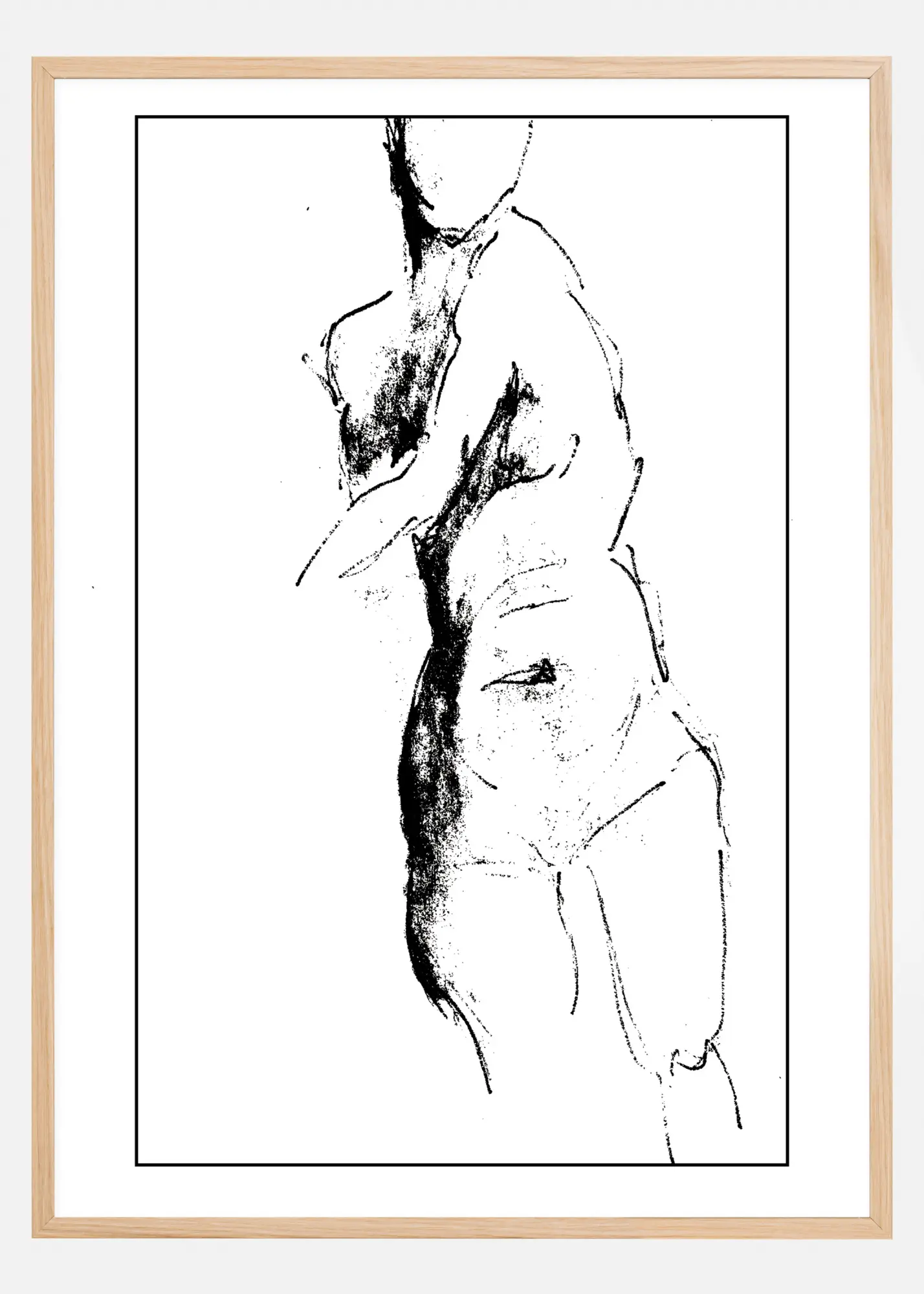 Un dessin d'une femme nue qui tourne. La nature esquissée de cette affiche contribue à créer un sentiment de mouvement lorsque le modèle se tourne, balançant ses bras sur sa poitrine. Cette impression en noir et blanc sera superbe sur un mur de couleur.