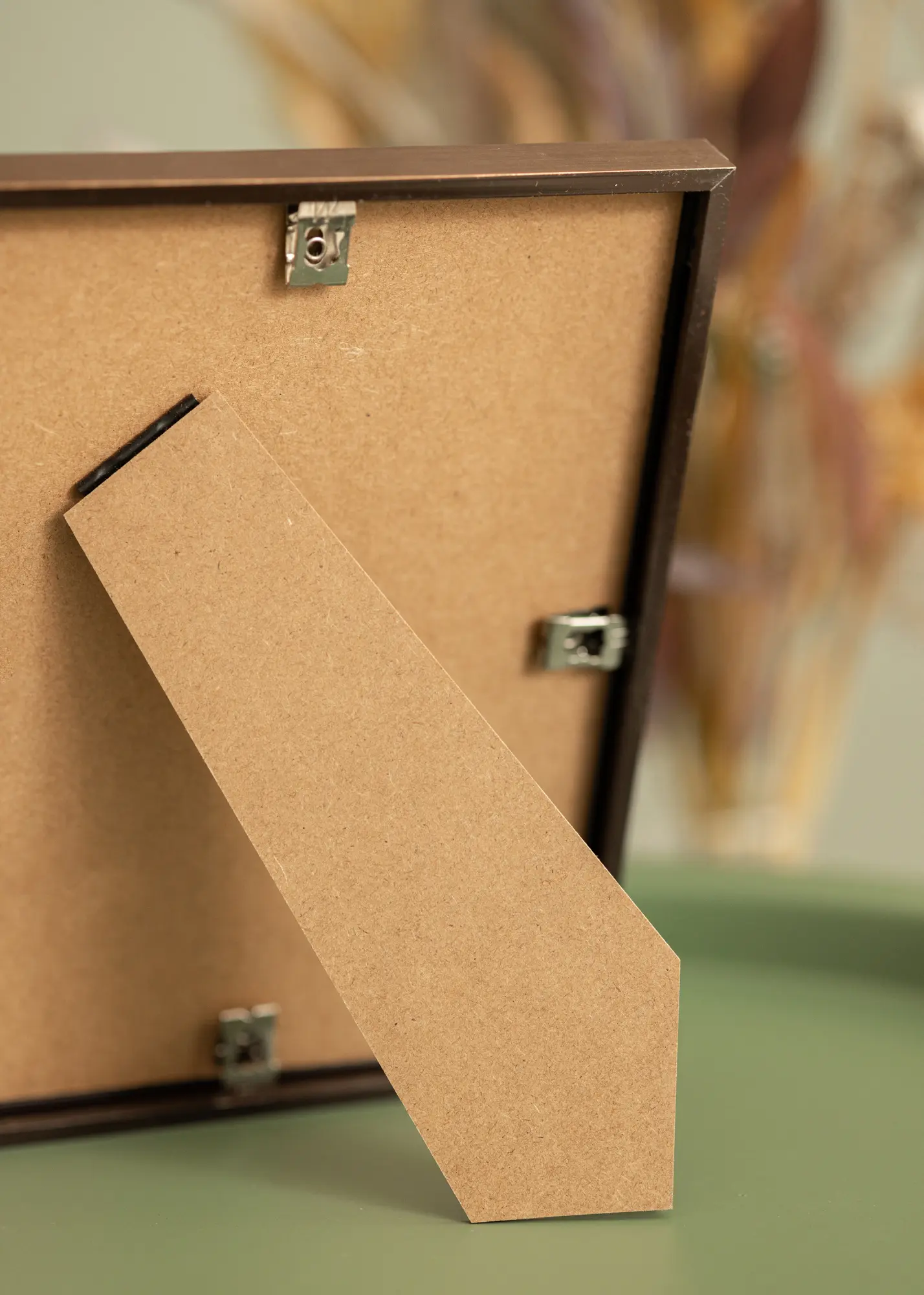 La teinte cuivrée du cadre se marie superbement dans les foyers d'inspiration rétro, mais également dans les pièces dans un style moderne et industriel. Le cadre a une profondeur de feuillure de 13,7 mm, de cette façon vous pouvez facilement compléter votre image avec un passe-partout dans une couleur que vous appréciez. L'image comme le passe-partout s'insèrent facilement dans le cadre. Vous n'avez qu'à tourner les broches métalliques au dos du cadre, desserrer le carton de fond et insérer ce que vous désirez encadrer.