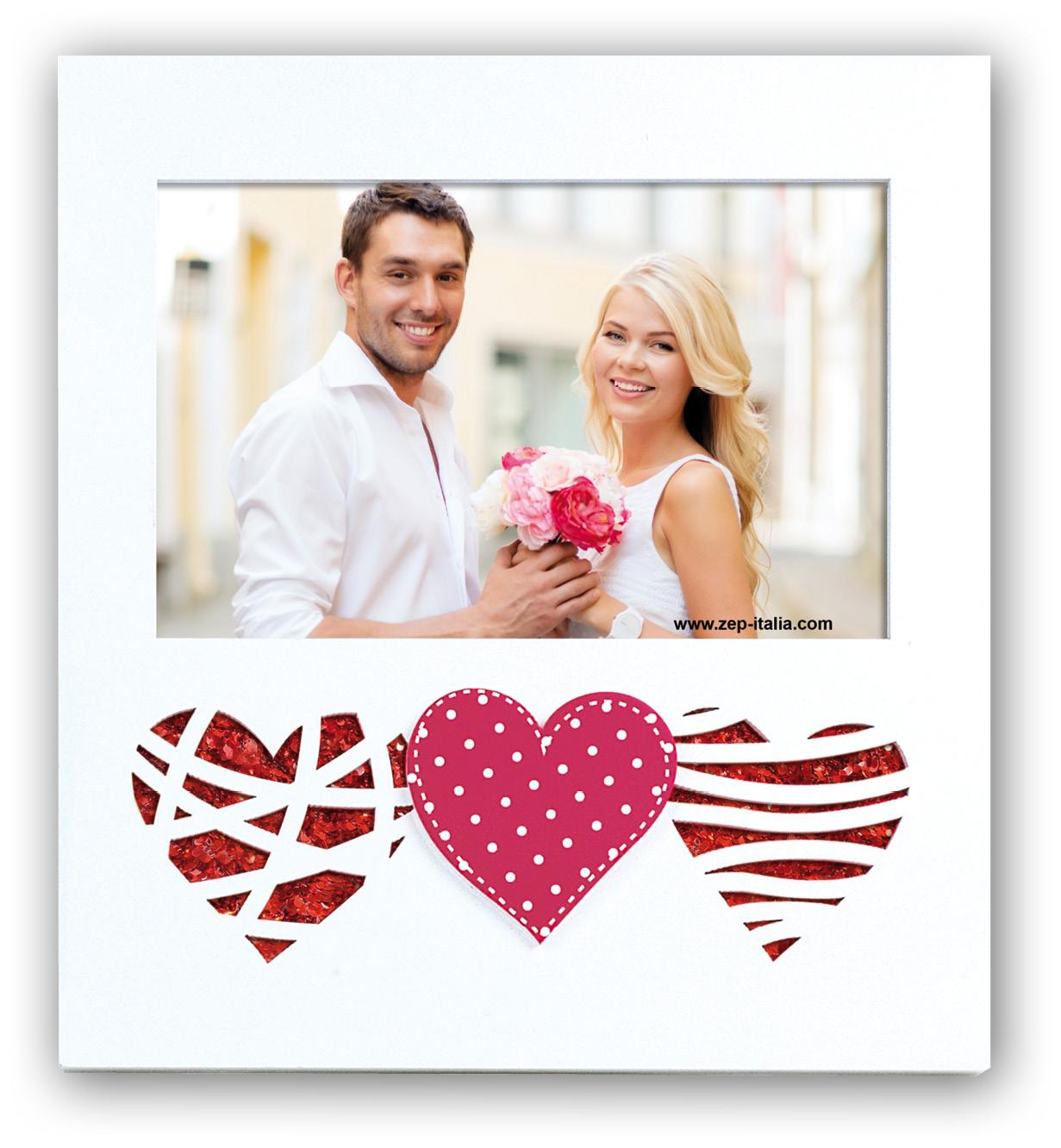 Élégant cadre avec pour thème l'amour mettant en valeur trois cœurs mignons aux motifs différents où le cœur du milieu se distingue également du reste du profil du cadre. La représentation parfaite de votre douce moitié et vous !
