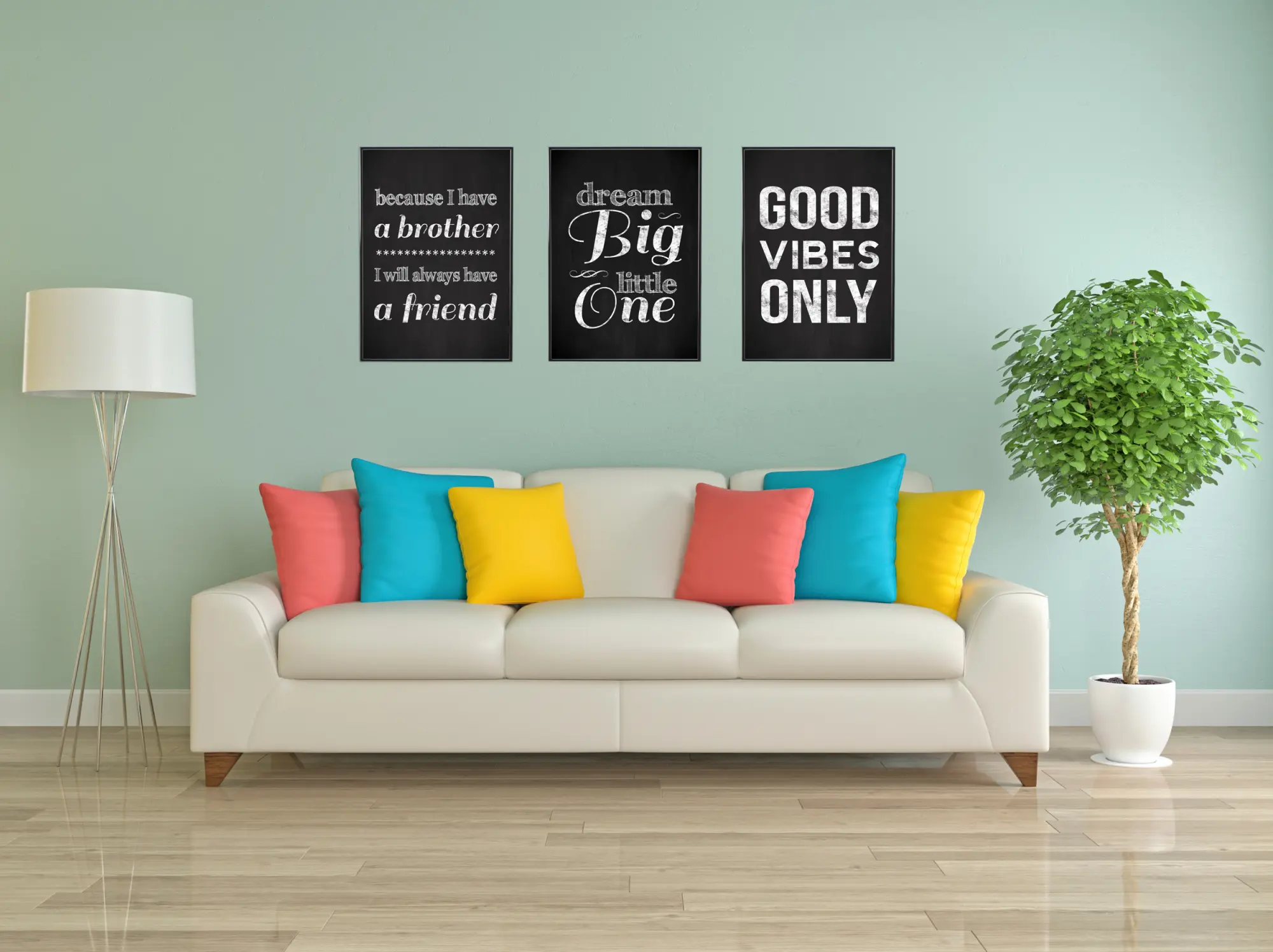 Une affiche graphique avec le message Good vibes only qui peut définir le ton dans n'importe quel environnement. L'impression épurée avec une police moderne blanchie à la chaux sur un fond noir est élégante à compléter avec un cadre noir qui laisse parler le texte. Le poster convient aussi bien à la maison qu'au travail ou dans un espace public, où un rappel d'une attitude positive est nécessaire. Accrochez volontiers l'affiche avec d'autres motifs textuels pour créer un bel effet graphique sur le mur.