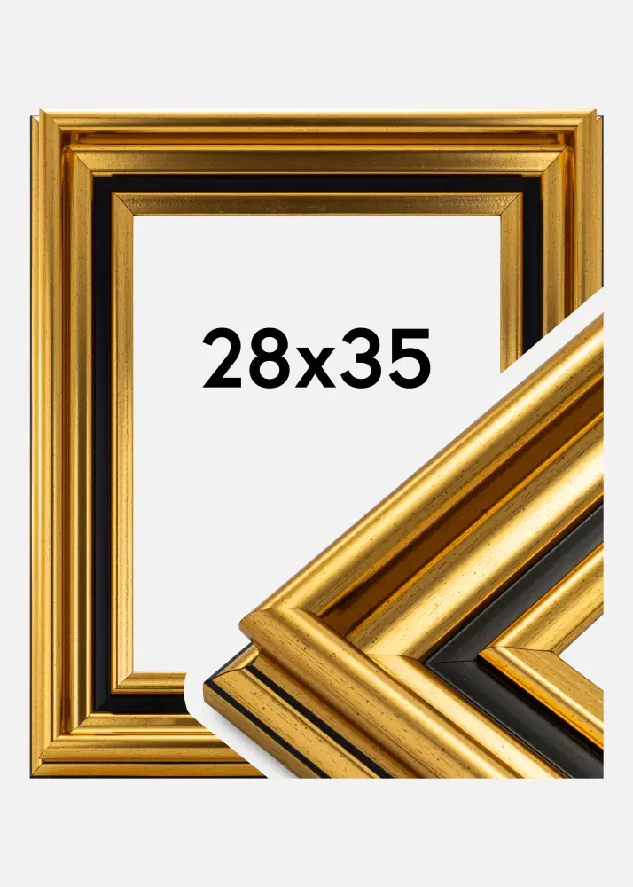 Gysinge est un beau cadre doré avec un profil extra large qui attirera toujours les regards. Il y a aussi une bordure noire autour du motif qui améliore d'autant plus le beau profil du cadre. Parfait lorsque vous recherchez quelque chose de vraiment spécial pour vos plus belles photos. Gysinge Or est l'un de nos favoris pour les photos de famille lorsque vous cherchez un cadre vraiment exclusif.