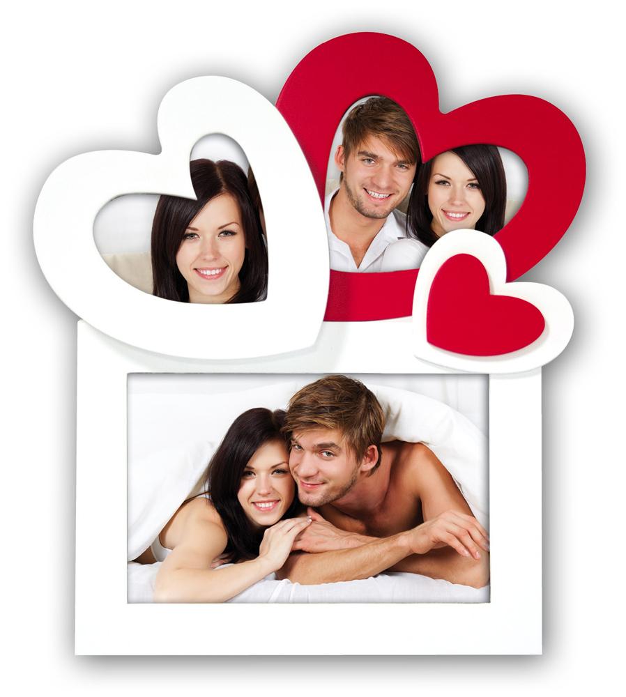Ingrid est un cadre collage blanc et rouge où deux des images sont en forme de cœur. Convient aussi bien à la bibliothèque qu'au mur de la chambre.
