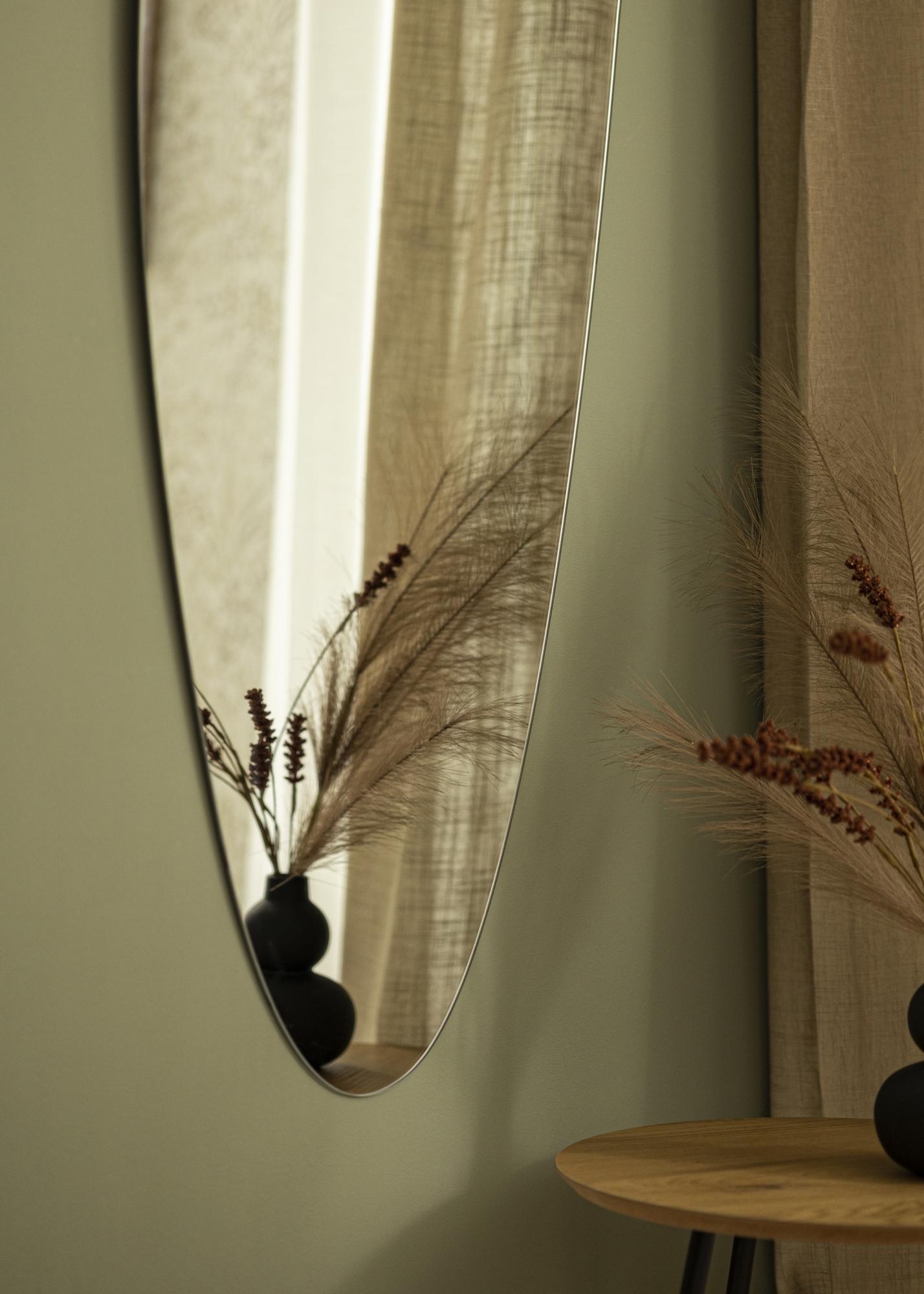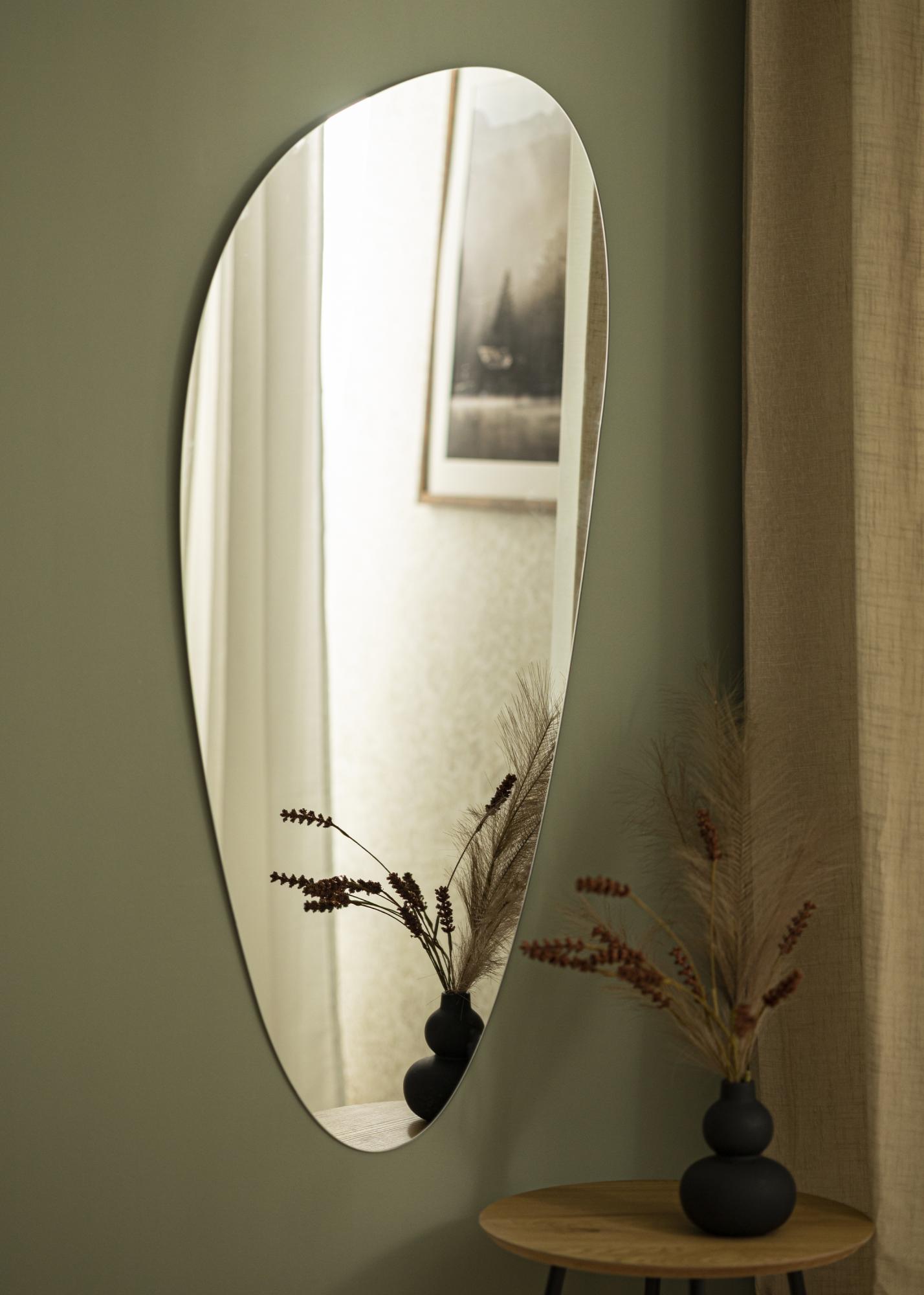 Ce miroir mural représente la plus belle facette du style minimaliste, avec son design sans cadre et sa forme asymétrique et oblongue. La finesse du verre miroir, de seulement 4 mm d'épaisseur, renforce encore plus cette impression minimaliste et dépouillée