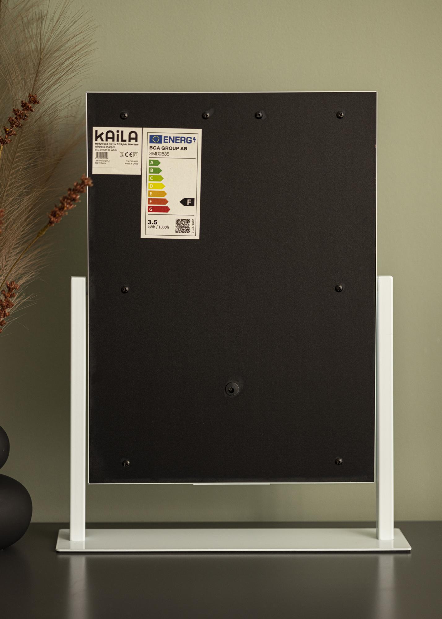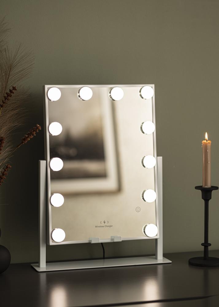 KAILA Miroir de maquillage Hollywood 12 m. Recharge sans fil Blanc 30x41 cm