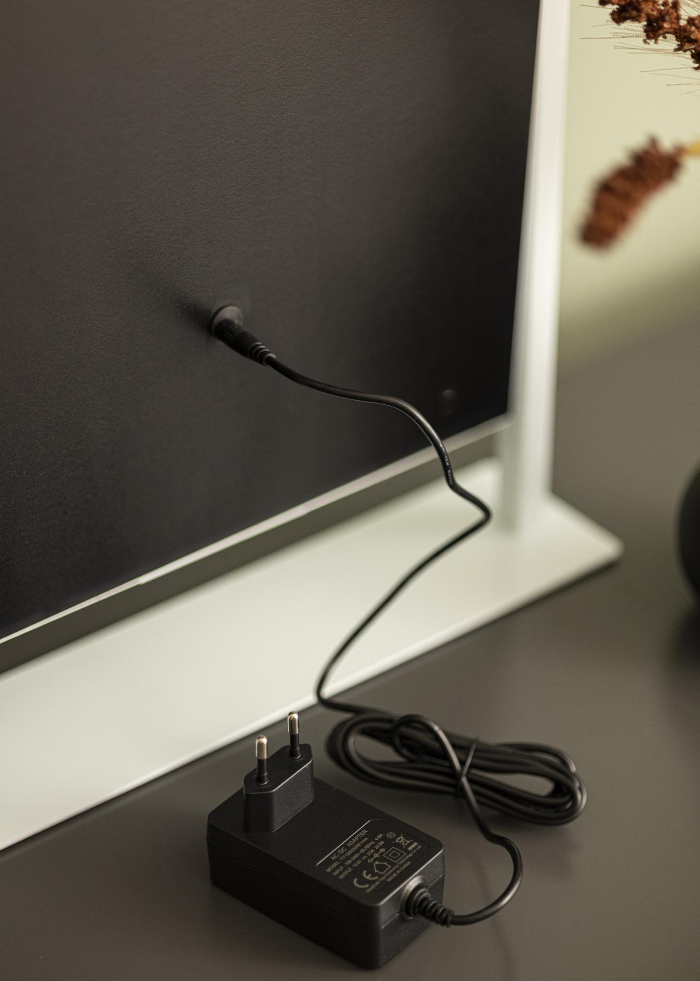 Il est conçu pour être posé sur son socle et se pare d'une teinte blanche élégante très esthétique tandis que sa conception judicieuse vous permet d'incliner la surface du miroir dans la position que vous préférez. Il est équipé d'un éclairage LED sous la forme de 12 lampes entourant la surface du miroir de 30x41 cm. L'éclairage LED est dimmable et pour régler la luminosité, il suffit de maintenir enfoncé le bouton tactile sur la surface du miroir pendant quelques secondes. Le raccordement électrique s'effectue avec une prise.