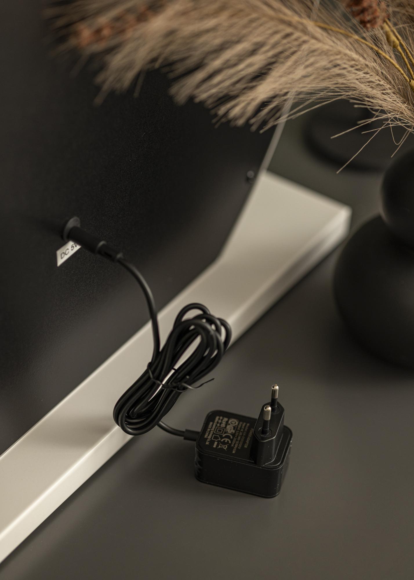 L'éclairage du miroir se compose de LED. Les sources lumineuses ne peuvent pas être remplacées mais elles ont une durée de vie correspondant au cycle de vie du produit même. Après 50 000 heures, on estime que l'intensité lumineuse est réduite d'environ 50% par rapport à son intensité d'origine. Branchement électrique avec prise.