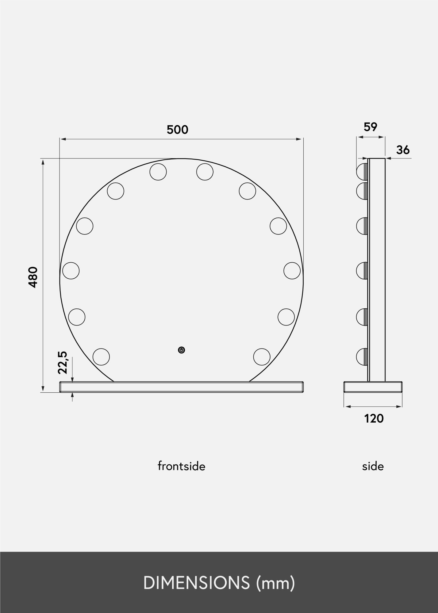 Le miroir mesure 50x48 cm. Ce beau miroir de maquillage de forme ronde deviendra plus qu'un miroir fonctionnel. Son apparence exclusive créé un grand effet glamour et tourne votre pièce en salon de beauté!