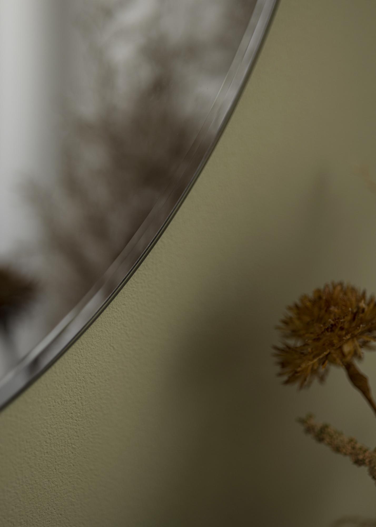 Un miroir avec verre miroir teinté est un accessoire d'intérieur distingué avec beaucoup de caractère. Voici ici un modèle de forme ronde avec un verre teinté gris - une teinte plus feutrée qui apporte une sensation de luxe, semblable à celle rencontrée dans un hôtel. La couleur grise s'intègre parfaitement dans les maisons décorées dans un style assez sombre, mais créera également un joli contraste sur des murs clairs. Ce miroir mural réfléchit la lumière comme un miroir normal, mais en projetant une lueur plus douce.