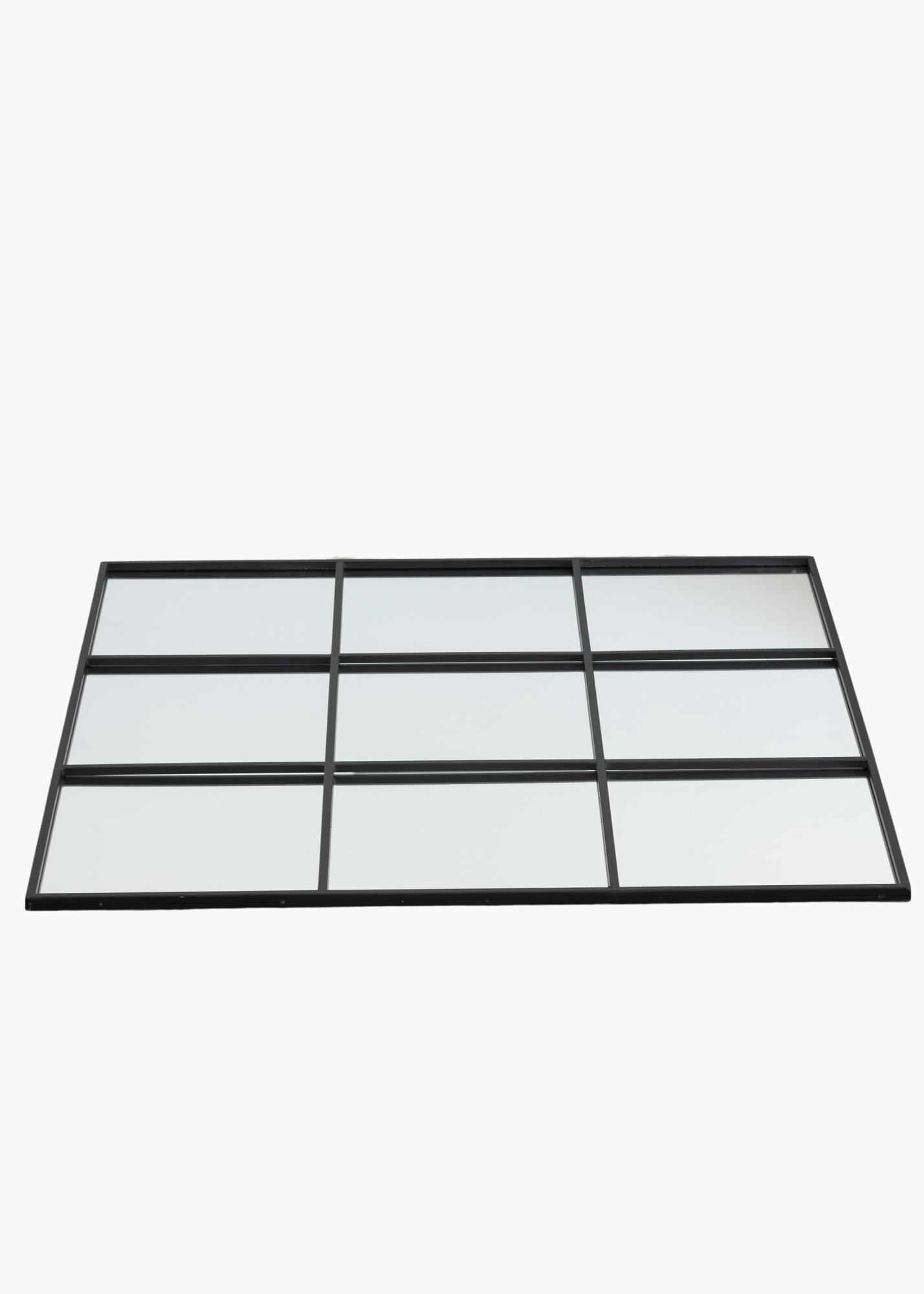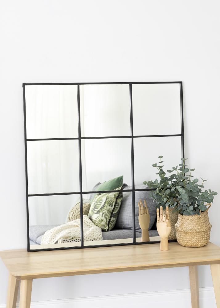 Voici un miroir de forme carrée avec un motif à carreaux élégant. Les carreaux sont joliment encadrés par de fines lignes noires en métal qui confèrent à ce miroir mural un caractère rustique et industriel. La forme carrée donne au miroir un aspect plus épuré. Placez ce miroir-ci dans l'entrée, la cuisine ou la chambre à coucher par exemple, afin de créer plus d'espace dans la pièce tout en obtenant un détail d'intérieur décoratif. Les supports muraux sont inclus. Le miroir mesure 90x90 cm.