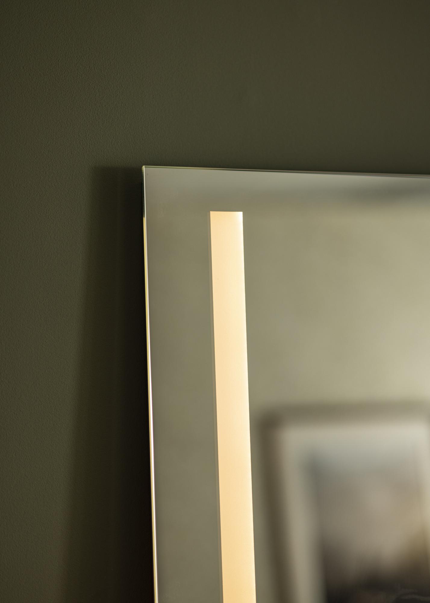 Voici un miroir élégant avec éclairage et dans une forme rectangulaire classique. L'éclairage se compose de deux rubans LED positionnés de part et d'autre de la surface du miroir. Cela donne une expression minimaliste élégante qui convient parfaitement dans une salle de bain. L'éclairage LED fournit une lueur agréable en 3000K et pour votre confort, vous pouvez facilement atténuer l'éclairage en maintenant appuyé le bouton tactile situé sur le bord inférieur du miroir de salle de bain. Vous pouvez ensuite régler la luminosité entre 10 et 100 % de sa puissance totale. Le miroir est destiné à une installation fixe et se relie à un interrupteur. Pour que le miroir puisse fonctionner correctement, il doit être connecté à un interrupteur régulier et non à un gradateur.