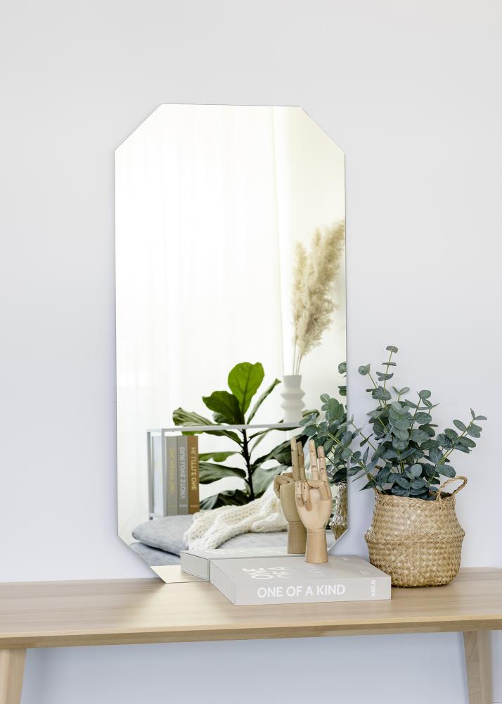 Miroir octogonal de KAILA au look minimaliste et élégant - parfait pour chaque maison ! Quel que soit votre style de décoration d'intérieur, ce miroir tendance est un excellent ajout au salon ou à la chambre. Le miroir a une dimension de 50x100 cm et un support mural, vous pouvez donc le suspendre au mur de la pièce de votre choix. Le miroir mural fin n'est pas équipé d'un cadre, ce qui renforce la sensation merveilleusement minimaliste.