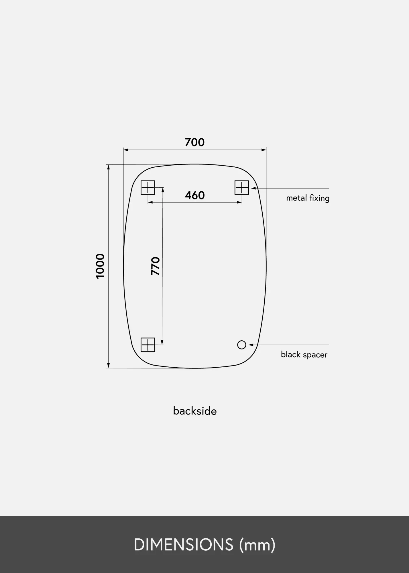 Beau miroir de KAILA, avec des coins arrondis et une forme arquée des côtés qui crée une élégance incroyable. Le miroir a un verre miroir fin et non coloré et n'est pas équipé d'un cadre, ce qui renforce la sensation merveilleusement minimaliste. L'apparence élégante signifie que le miroir mural convient parfaitement à chaque intérieur. Grâce au support mural pratique, vous pouvez fixer le miroir au mur. Le miroir mesure 70x100 cm.