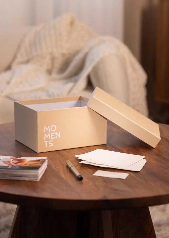 La boîte à photos KAILA Memories est une boîte photo élégante et fonctionnelle qui peut contenir jusqu'à 700 photos de la taille 10x15 cm. Le design de couleur crème offre une sensation douce et élégante qui s'harmonise avec la plupart des intérieurs. Parfaite pour organiser et préserver vos souvenirs préférés de manière belle et pratique.