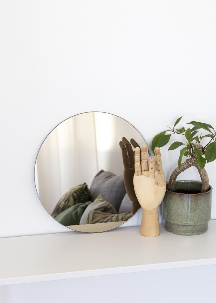 Ce miroir rond a un design fin sans cadre, ce qui donne un look élégant et exclusif qui rehausse chaque pièce. Avec un verre miroir dans une teinte bronze, le miroir mural a un aspect riche et chaleureux qui s'intègre parfaitement dans un intérieur moderne. Le miroir fait partie d'une collection de miroirs ronds de couleur bronze de KAILA et vous pouvez choisir entre sept tailles différentes pour trouver celle qui convient le mieux à votre intérieur. Ce modèle a un diamètre de 30 cm. Vous pouvez facilement suspendre le miroir dans l’entrée ou le salon à l'aide du support mural.