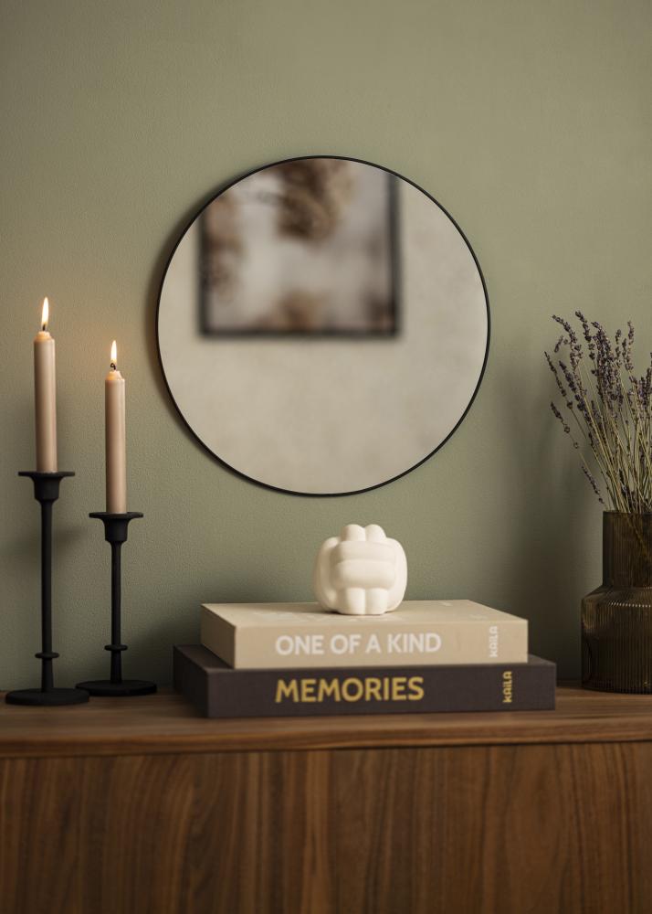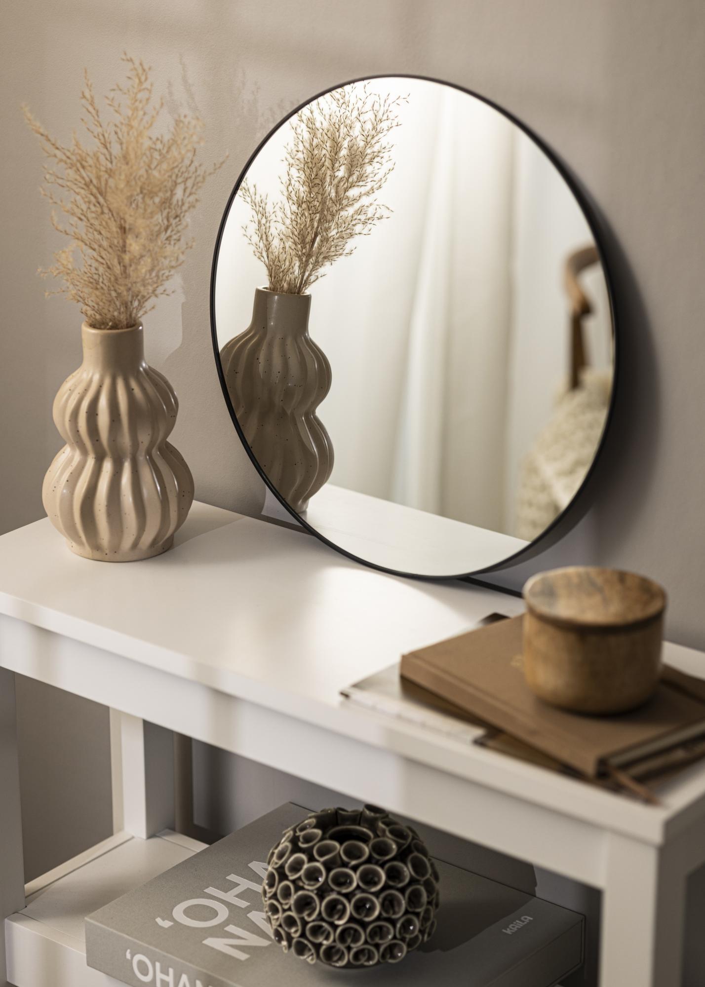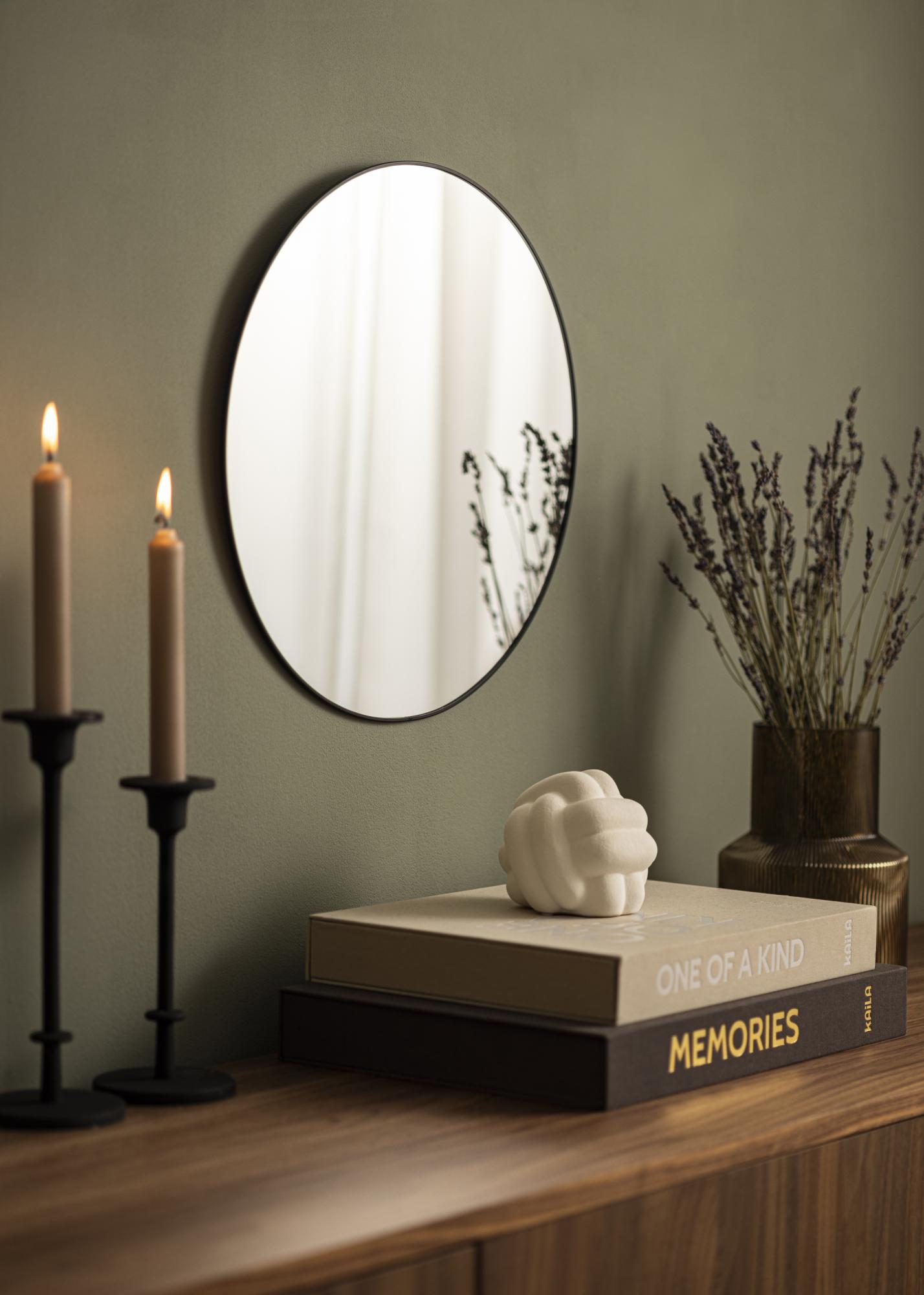 Voici un miroir rond avec un cadre fin et épuré en métal noir. Le mince bord noir donne au miroir une impression industrielle, mais le miroir s'intègre dans toutes les maisons et tous les styles d'intérieur grâce à son design épuré qui peut créer une harmonie parfaite ou un joli contraste. Placez le miroir seul sur le mur ou avec d'autres éléments muraux décoratifs.