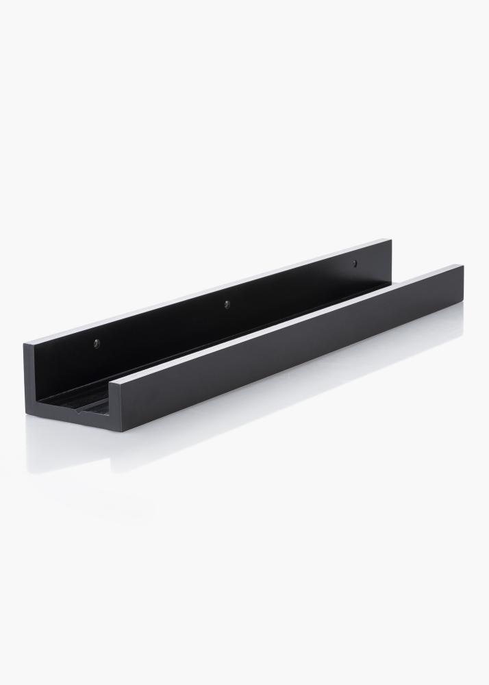Exposez et variez facilement et élégamment votre art mural avec une étagère à cadres élégante ! Cette étagère à cadres est fabriquée en MDF et est peinte en noir tendance avec une belle finition semi-brillante. La tablette a un design épuré avec des lignes droites et simples et une sensation minimaliste. La surface de l'étagère a une rainure fraisée au milieu qui sert de support à vos cadres et leur donne un angle élégant lorsqu'ils sont inclinés contre le mur.