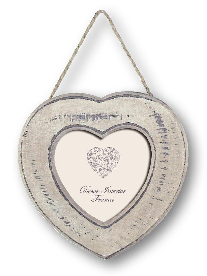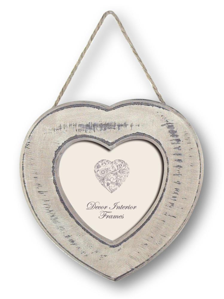 Le Havre est un joli cadre vintage gris clair en forme de cœur prêt à être suspendu au mur avec sa ficelle de chanvre d'inspiration rétro.