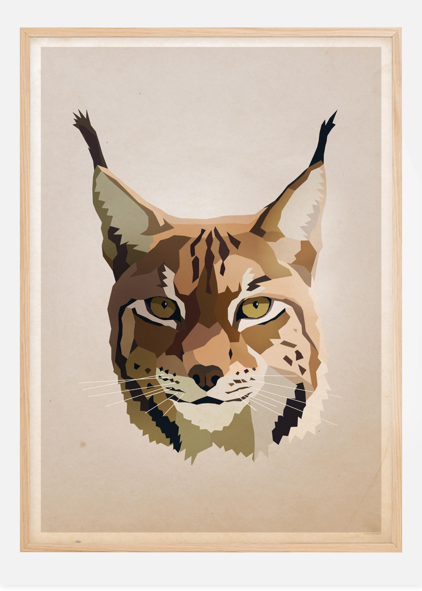 Une affiche intense d'un magnifique lynx aux couleurs pastel . Sur un fond rose pâle, les yeux du lynx représentent un regard attentif mais dominant. Les différentes couleurs pastel brunes et vertes s'harmonisent parfaitement avec les yeux du lynx.