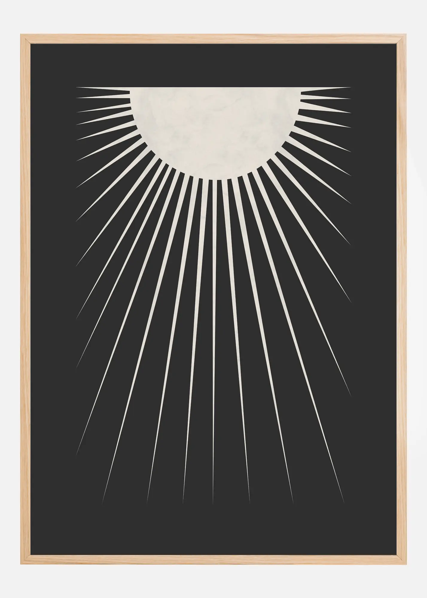 Chaque rayon est soigneusement placé pour refléter l'éclat de la lune, et ensemble, ils créent une image harmonieuse qui unit le classique et le moderne. Cette impression est un excellent choix pour tous ceux qui souhaitent apporter un élément de simplicité sophistiquée à leur espace. Les couleurs du motif – un spectre de noir et blanc cassé – offrent une polyvalence et peuvent facilement s'harmoniser avec différents styles de décoration et palettes de couleurs.